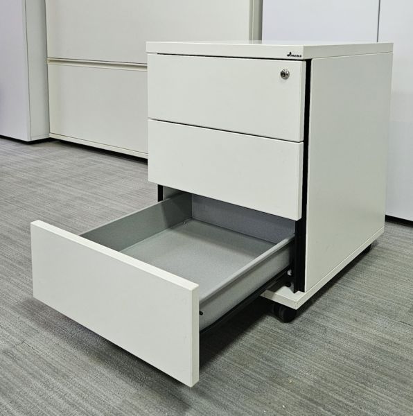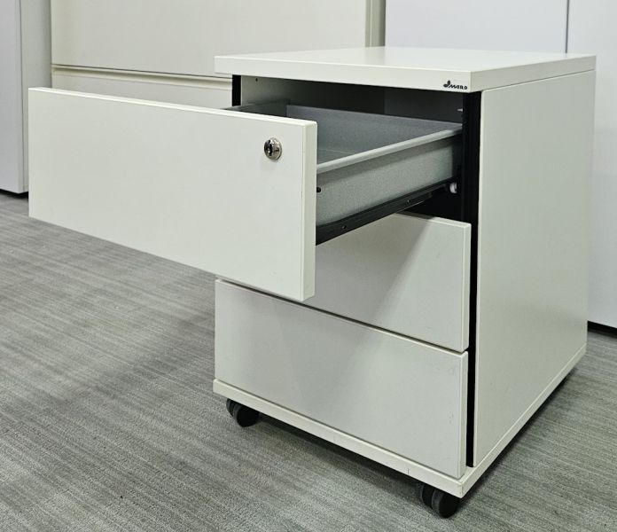 Wyposażony w 3 szuflady, kółka. Kontenerki mogą nie posiadać kluczyka.