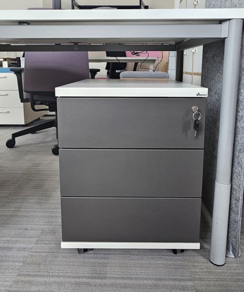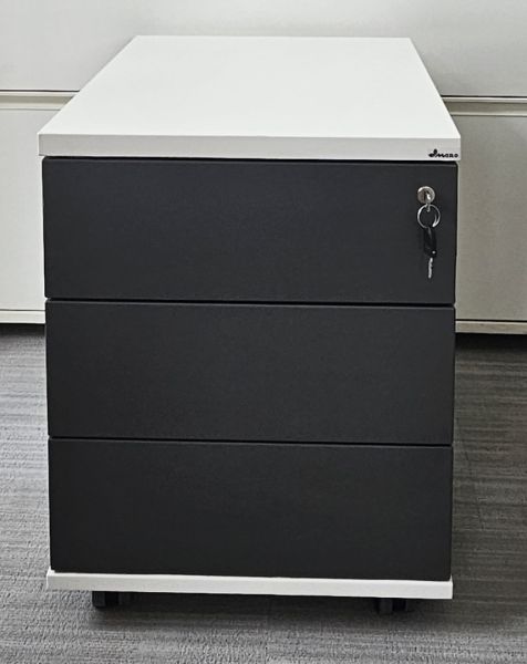 Wyposażony w 3 szuflady, kółka. Kontenerki mogą nie posiadać kluczyka.