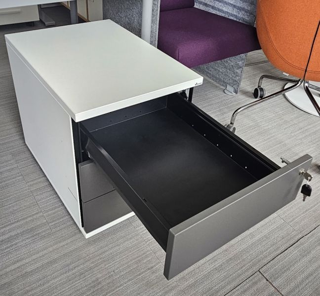 Kontener podbiurkowy biały, fronty grafitowe