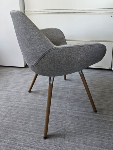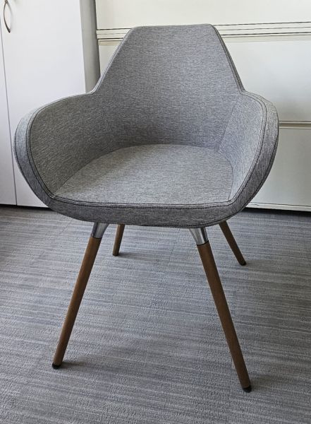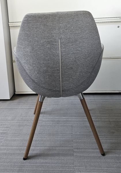 Tapicerowany kubełek siedziska i oparcia w kolorze szarym.