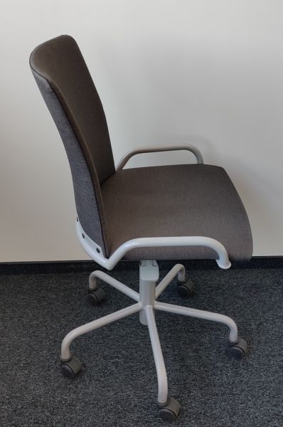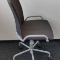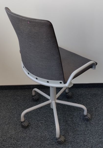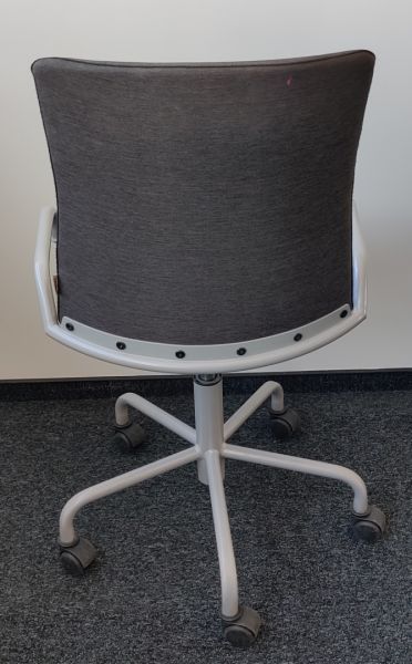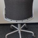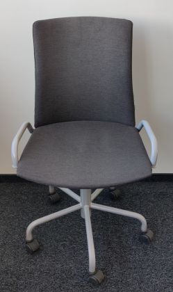 Siedzisko i oparcie tapicerowane w kolorze szarym, baza 5-cio ramienna szara.