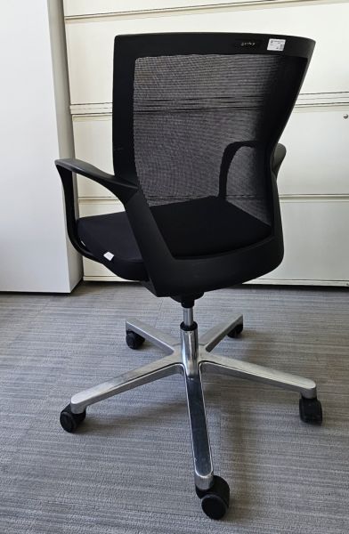 Krzesło czarna siatka/alu skórzane podłokietniki