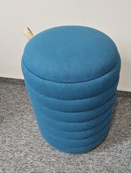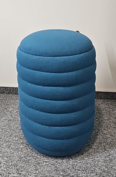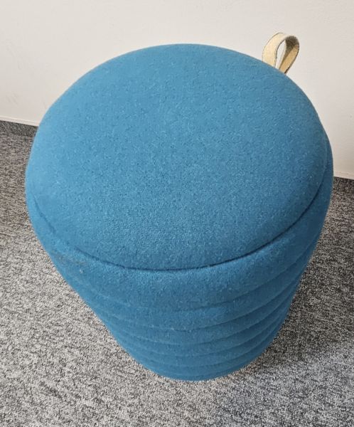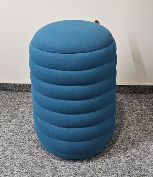 Pufy o klasycznej formie, z łatwością można je przesuwać z miejsca na miejsce. Wymiary śr. ok. 45 cm i 90 cm,