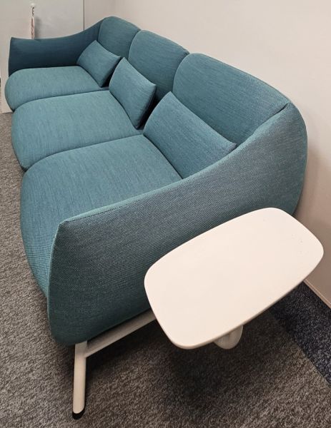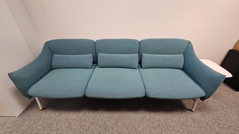 Sofa charakteryzuje się ciekawym oparciem i wygodnym siedziskiem.