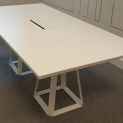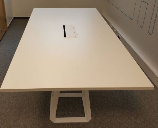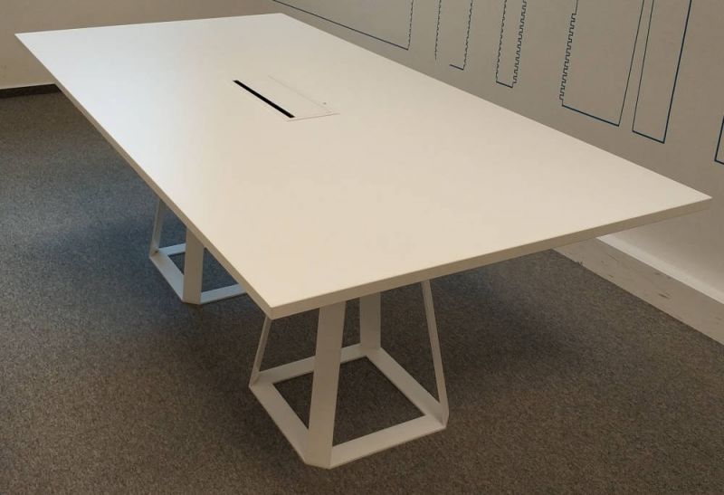 Stół konferencyjny w kolorze białym o wymiarach 180x90 cm.