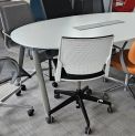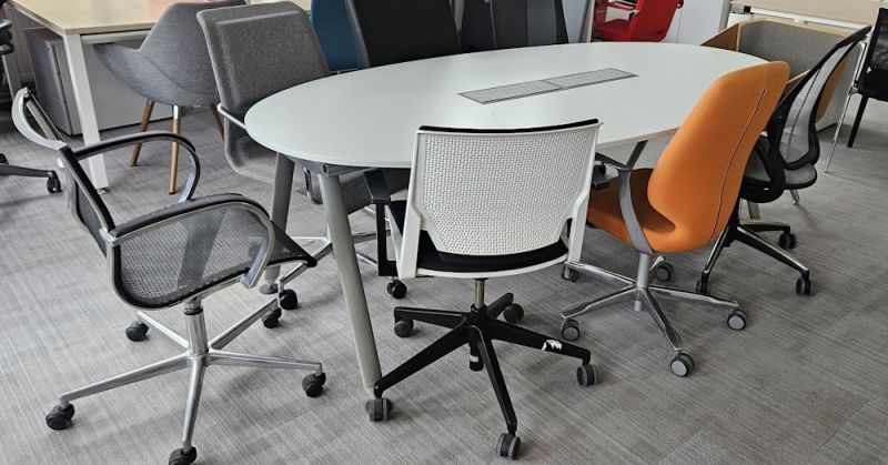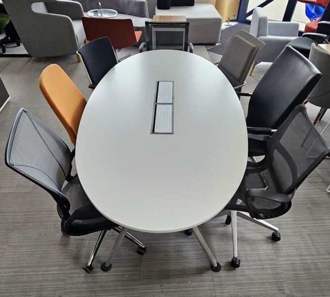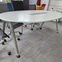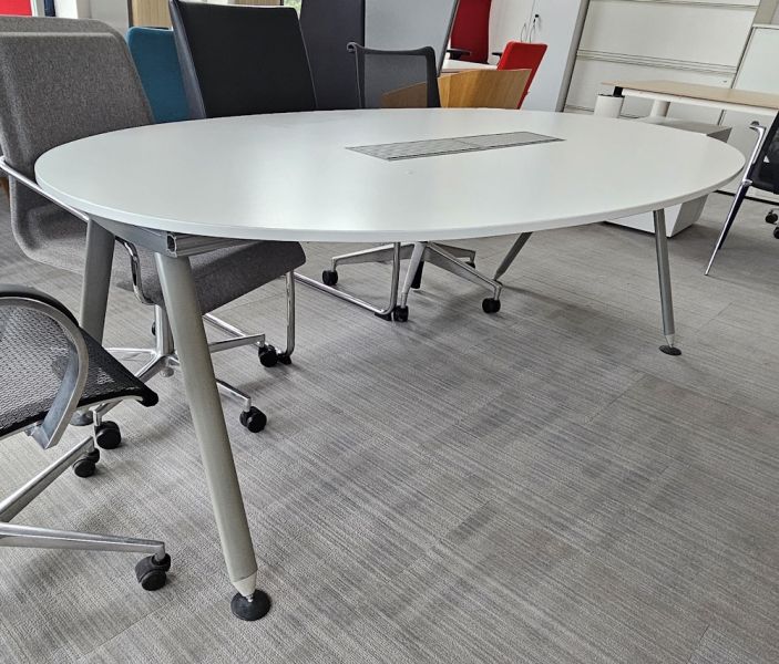 Stół konferencyjny o wymiarach 220 cm x 113 cm. Kształt elipsy.