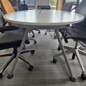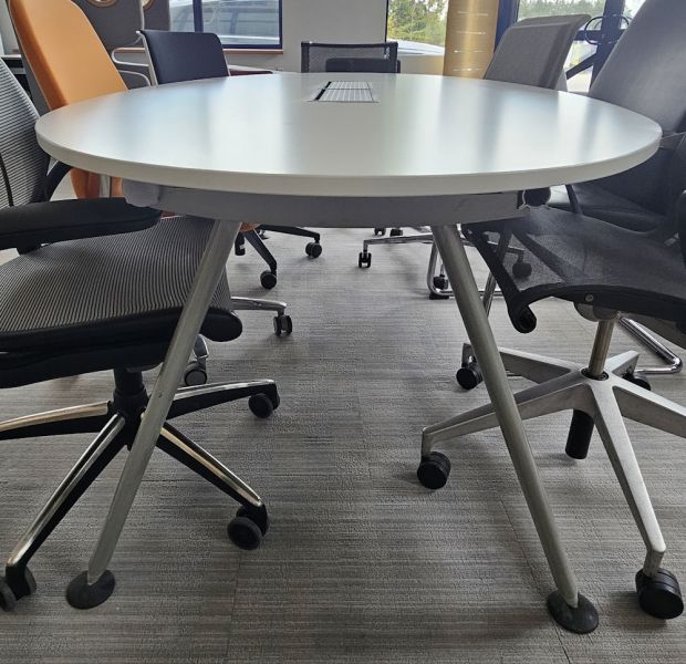 Stół kantyna śr. 120 cm IKEA Billsta biały, talerz szary