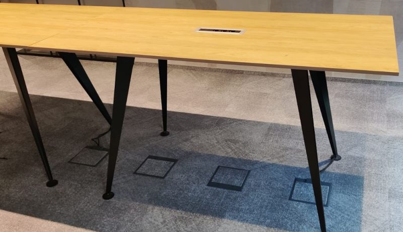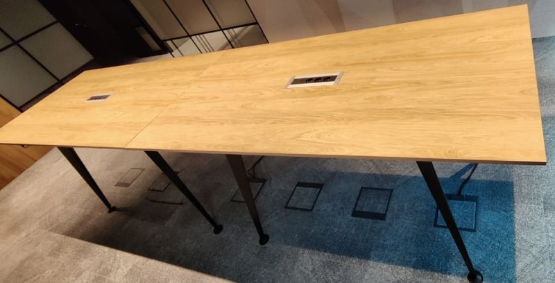 Wysoki stół konferencyjny o wymiarach 200x100x110 cm.