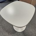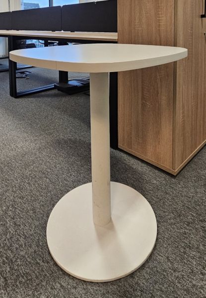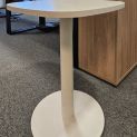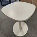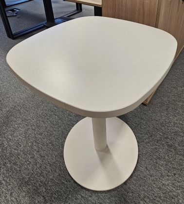 Stoły z białym blatem na talerzowej nodze. Blat płyty o wymiarach 70x70 cm. Stan bardzo dobry.
